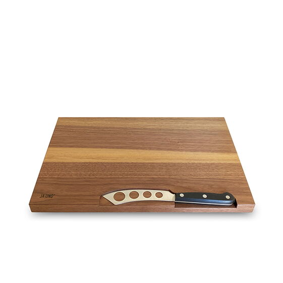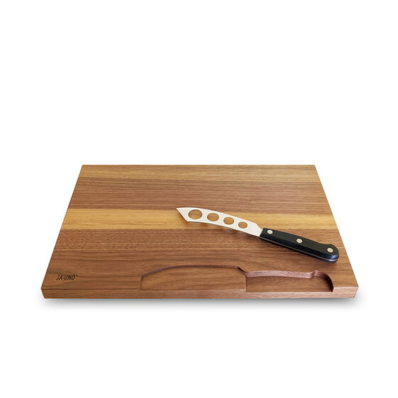 Holz-Käsebrett in Nussbaum mit hochwertigem Käsemesser.