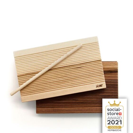 Mit diesem Brett kommen die selbstgemachten Gnocchis bestens in Form. Über die eingefrästen Längsrillen entsteht nicht nur das typische Erscheinungsbild, die Pasta nimmt gerillt auch mehr von der köstlichen Sauce auf.