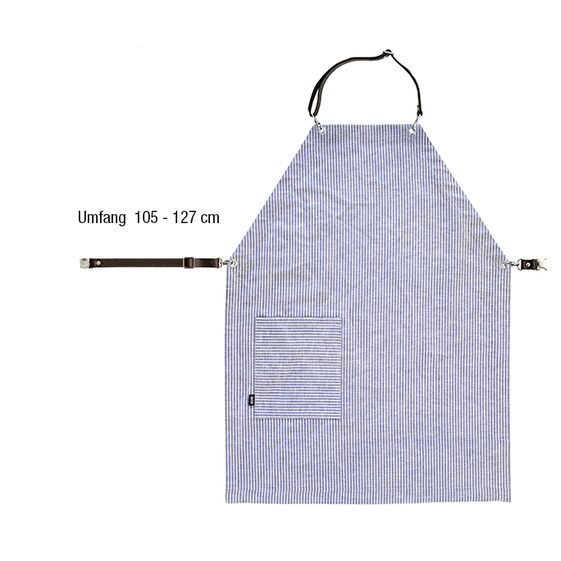 Die Schürze kann mit 60° gewaschen werden. Vor dem Waschen die Lederteile entfernen.