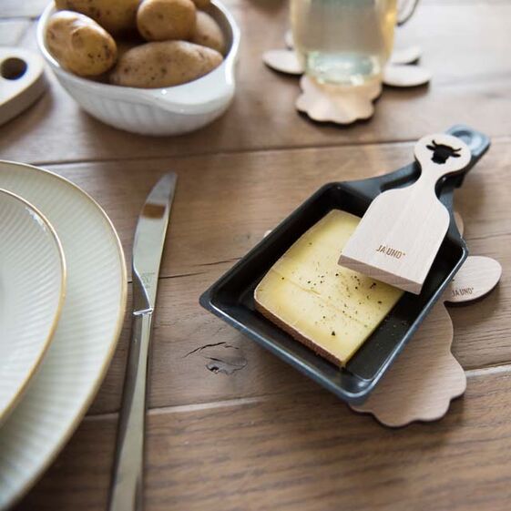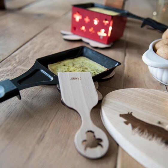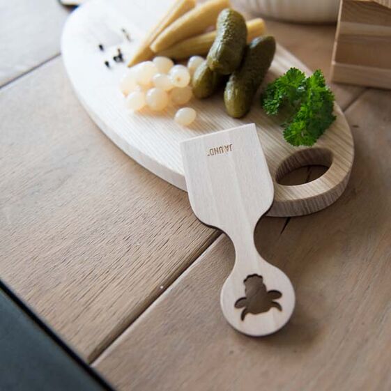 Mit diesen Raclette-Schaber aus Buchenholz macht die gute Käse-Party noch viel mehr Spass.