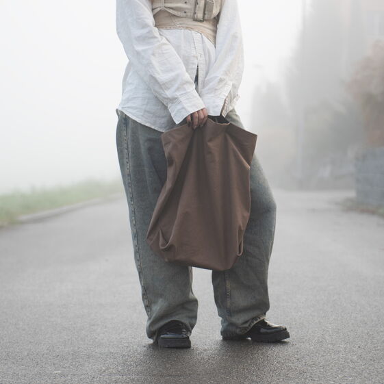 Die Taschengriffe sind in der oberen Kante eingenäht. Zusätzlich kann die Tasche mit einem Trageband als Schultertasche getragen werden.